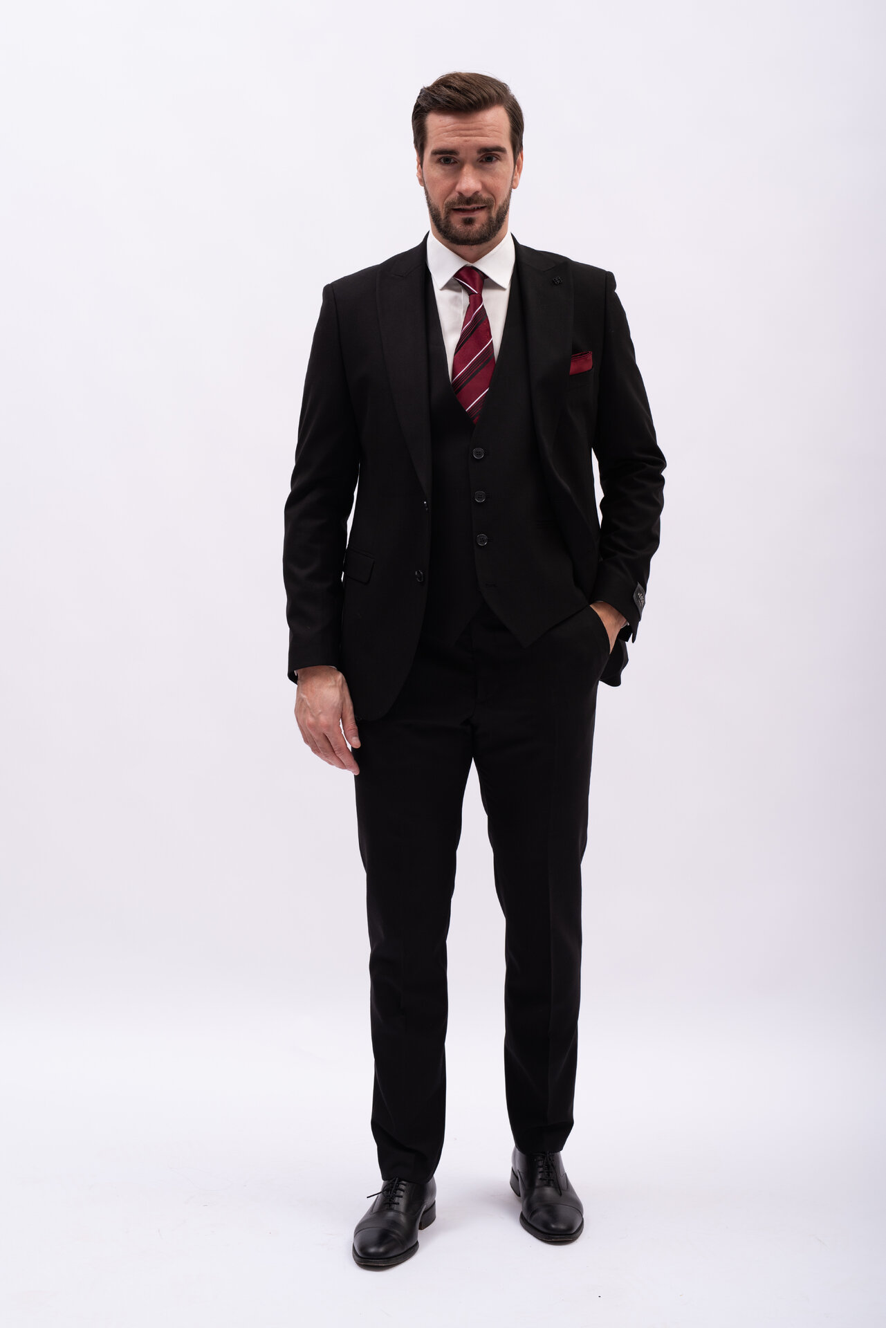 Černý pánský oblek Orlando s jemným vzorem Slim Fit. Elegantní a nadčasový střih, který zvýrazní postavu. Ideální na svatby, byznys akce i večerní události. Pohodlný, stylový a vždy reprezentativní. ...