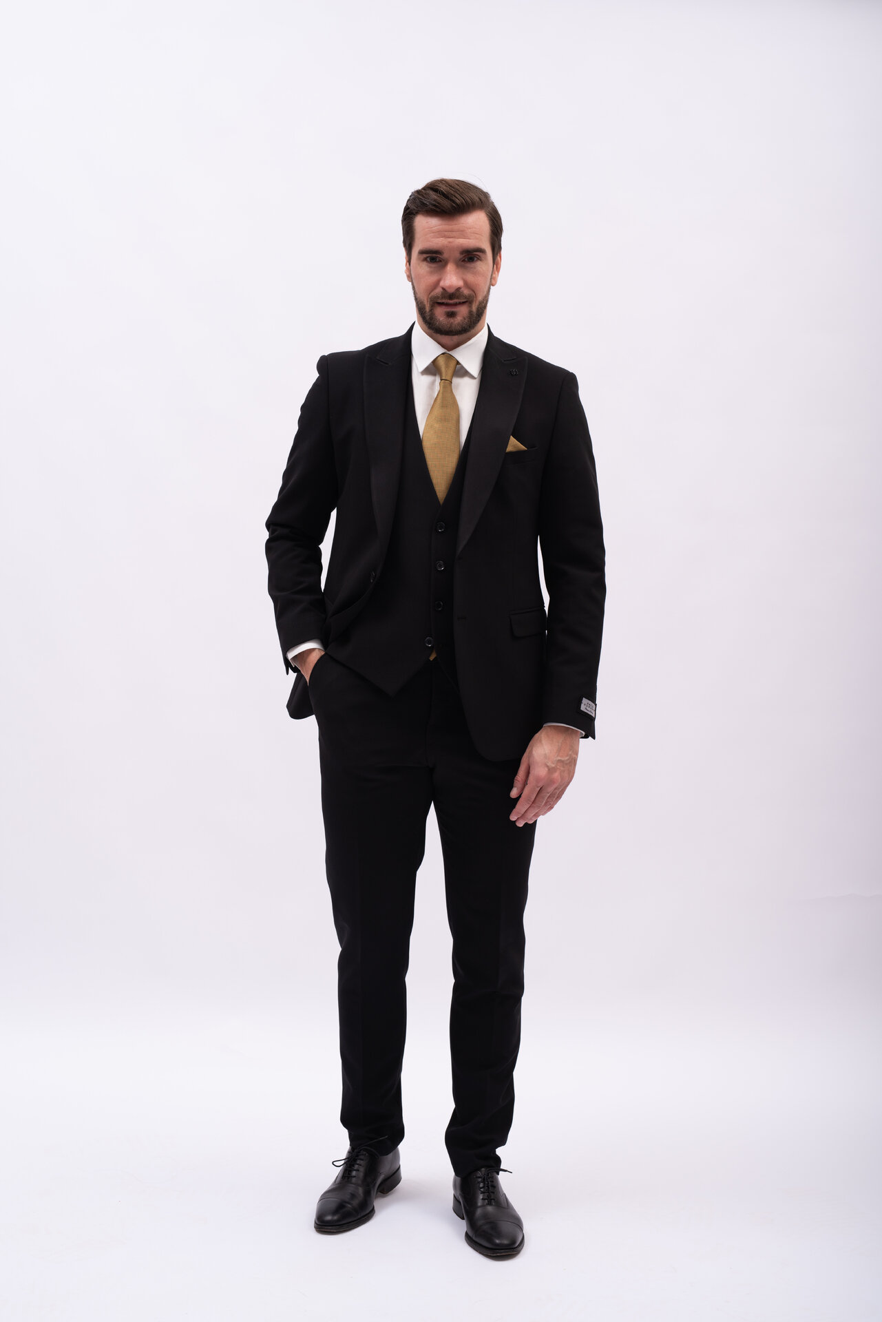 Každý detail — od klop až po knoflíky — je navržen tak, aby vyzařoval jistotu a vytvářel dojem skutečné exkluzivity. Díky své univerzálnosti je tento model ideální pro galavečery, svatby, důležitá jednání i formální večerní události. Model Massimo není jen oblek. Je to výraz osobního stylu, sebeprezentace a respektu k moderní eleganci.
